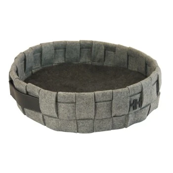 Dieser zeitlose Hundekorb passt sich perfekt in viele Wohnambiente ein. Seine schlichte Eleganz machen ihn zum Eyecatcher, der Ihrem Liebling hohen Liegekomfort bietet. Die robusten Kunstledergriffe sind ein zusÀtzlicher Hingucker, der den Filzkorb so schick macht.