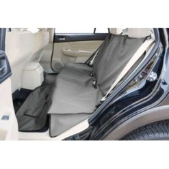 StrapazierfaĚhiger, wasserfester, maschinenwaschbarer Autositzbezug, der sich auf der RuĚckbank oder als HaĚngematte anbringen laĚsst. Die sichere Befestigung haĚlt den Bezug an Ort und Stelle, und dank dem rutschfesten Material kann der Hund ruhig sitzen.