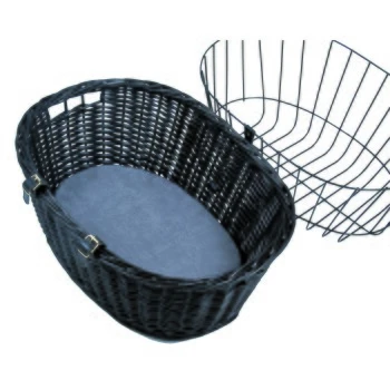 Drei Riemen ermöglichen das schnelle Trennen oder Verbinden von Korb und Gitter. Mit Kissen in Velourslederoptik (bei 30 Grad handwaschbar).