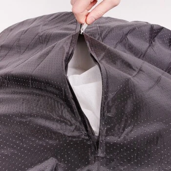 Bei Verschmutzungen kann der Bezug per Reißverschluss komplett abgenommen und bei 30 °C gewaschen werden. Hinweis: Bitte vor dem Waschen den Reißverschluss schließen.